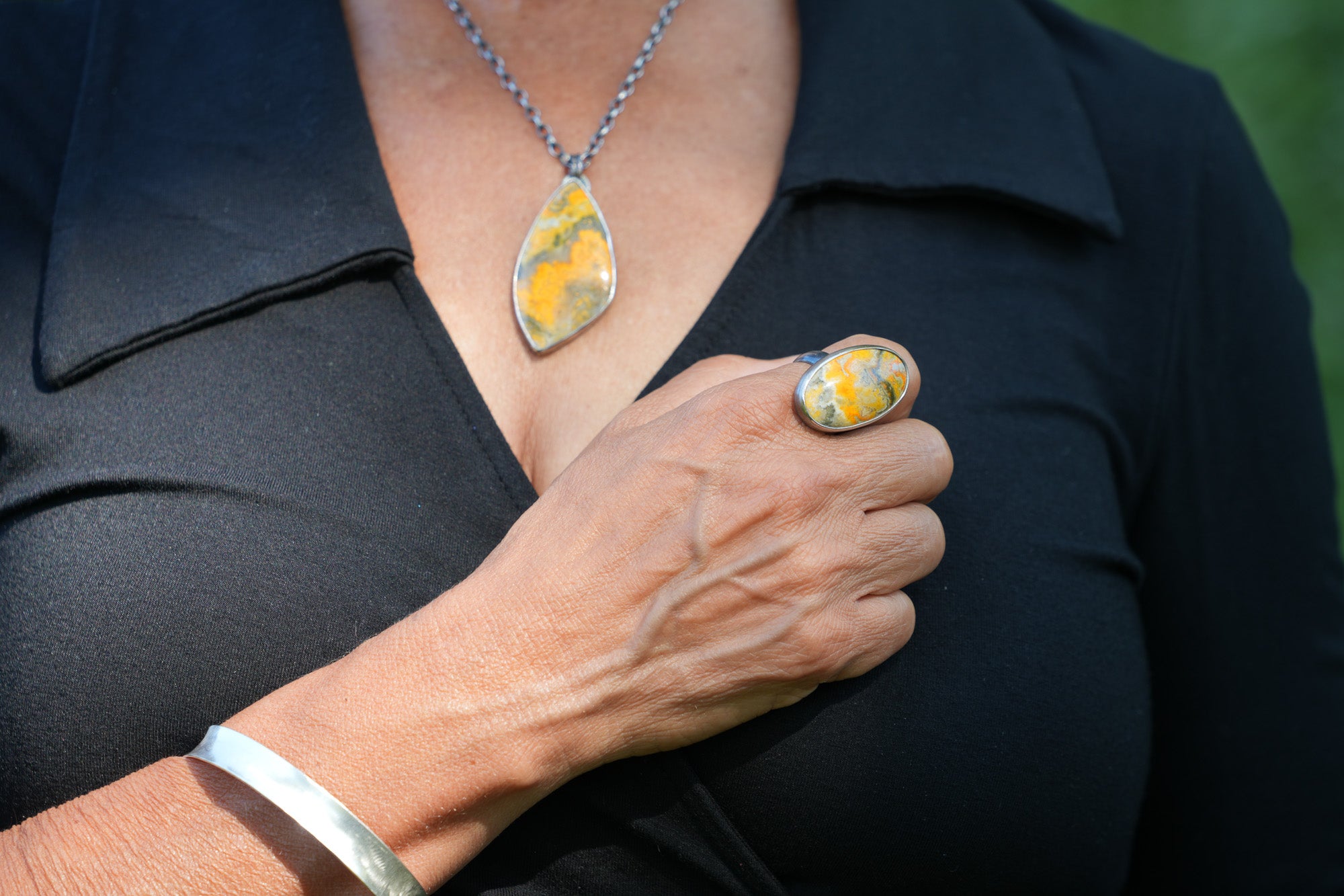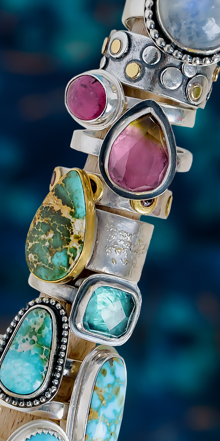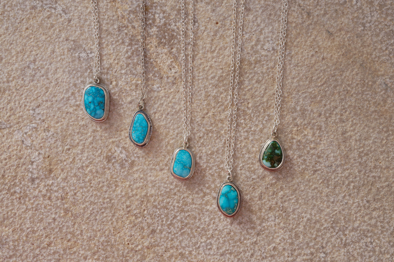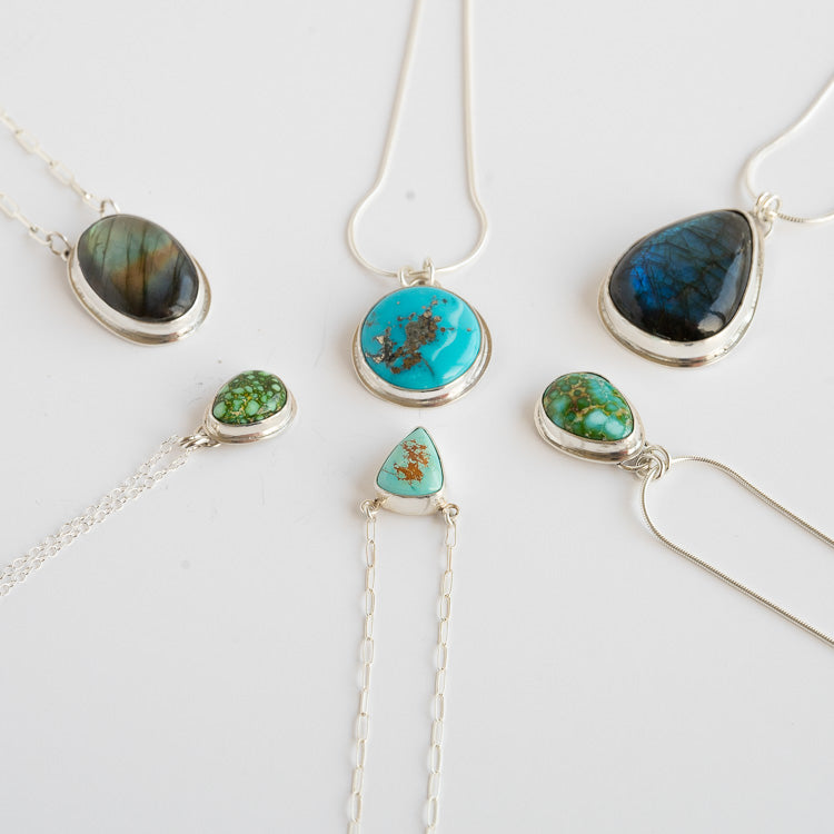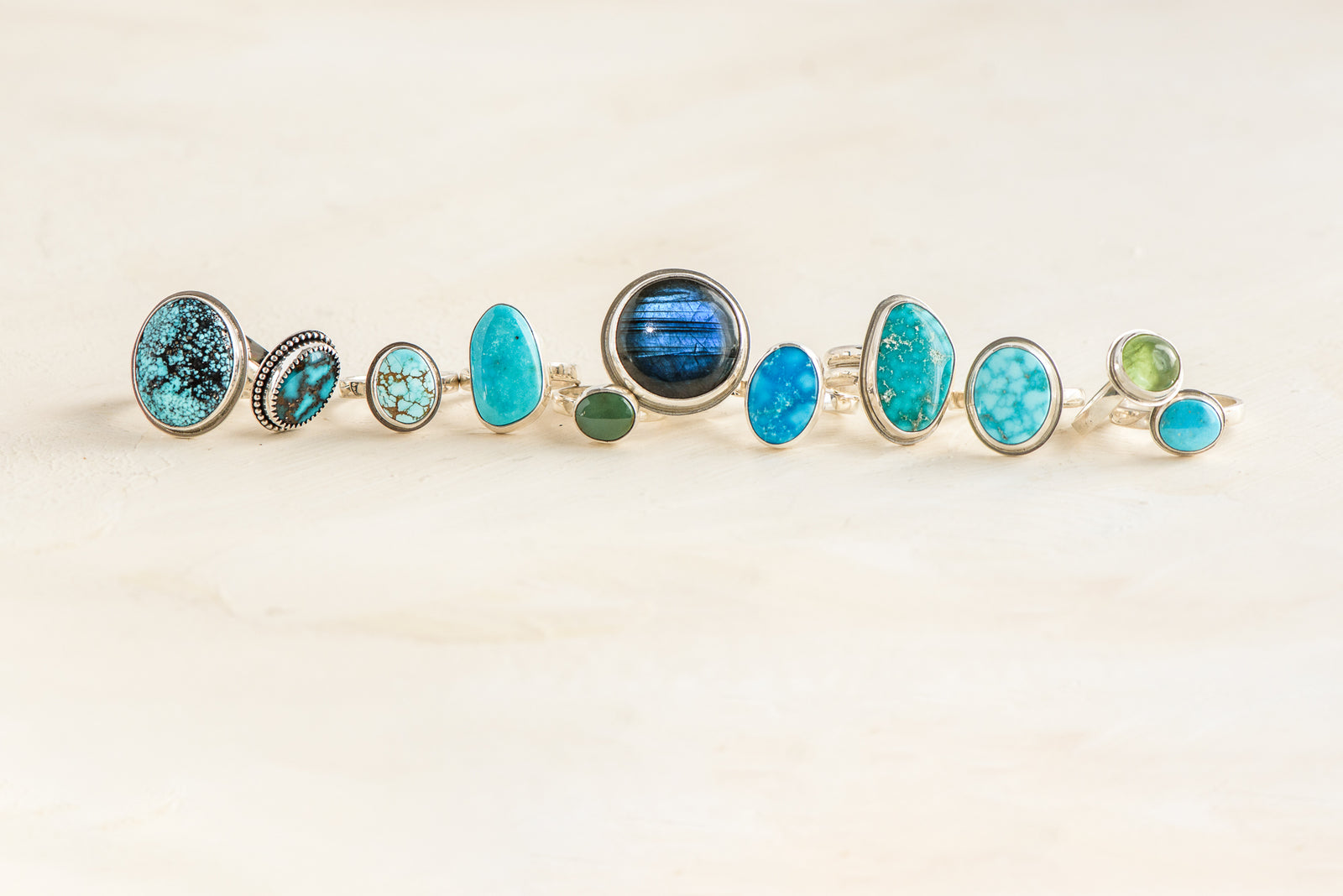 I’m Laura and I believe there is a stone for every person. My work is inspired by the rich colours and sweeping landscapes of New Mexico, combined with the elegance and indulgence of the English countryside. From my studio in the South Downs, I work with one of a kind gemstones that offer a world of colour; from deep dark blue Lapis Lazuli with intricate specs of pyrite glitter, to the Larimar sea blue swirls of the Dominican Republic and, of course, my first love: the rich range of turquoise.
