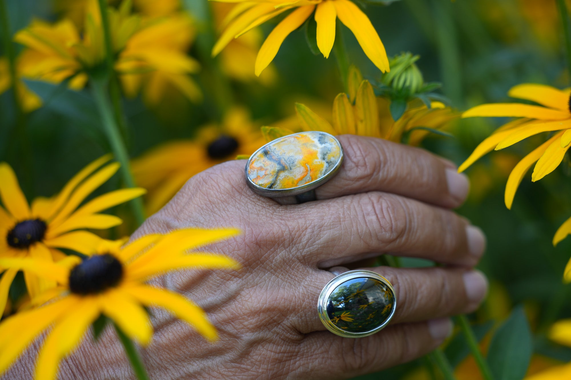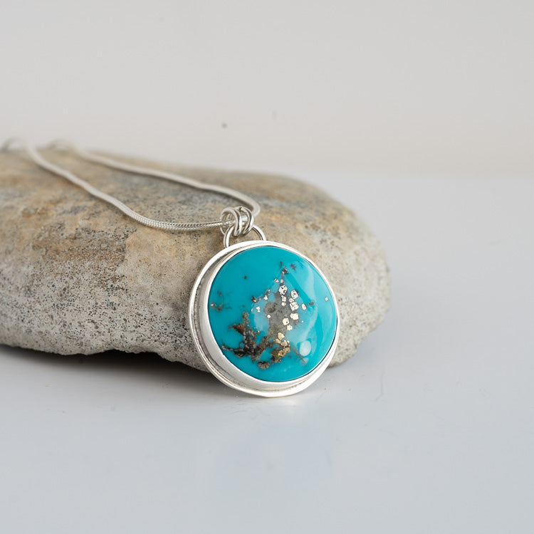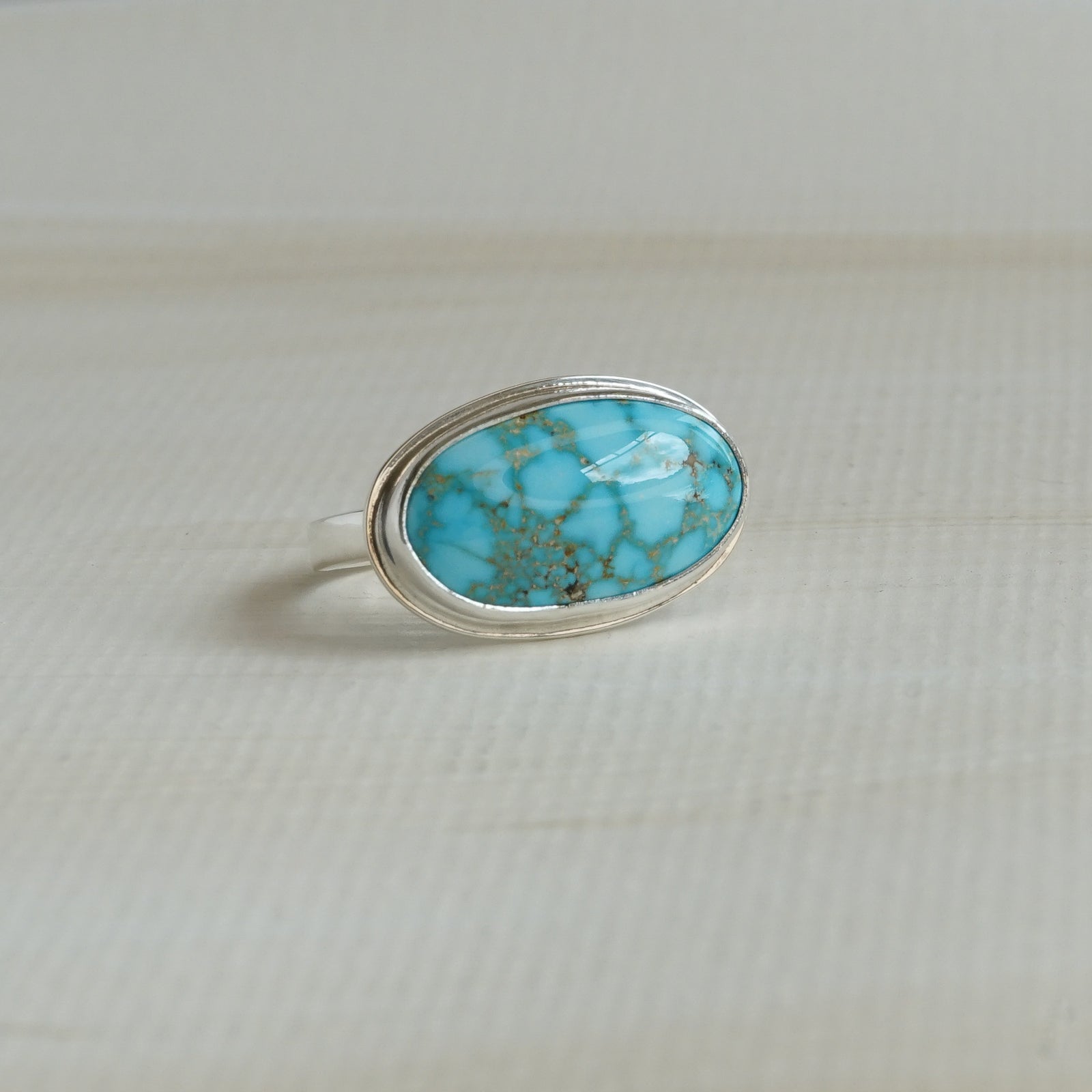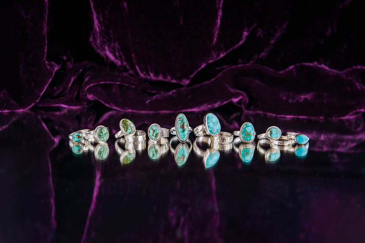 I adore working with turquoise in the most extraordinary blues and greens that you could ever imagine; picture perfect and wonderfully unique. I am enamoured by the complexity and variety of turquoise. From pure stones free from ‘imperfections’ to those bursting with pyrite (those silver and gold flecks across the stone) and intricate matrix line patterns. Choose your dream stone and design your own bespoke ring.