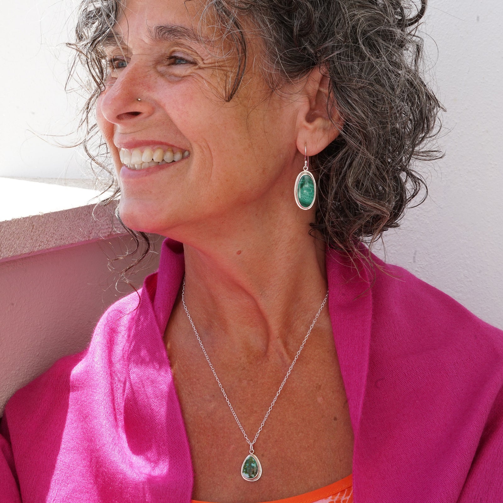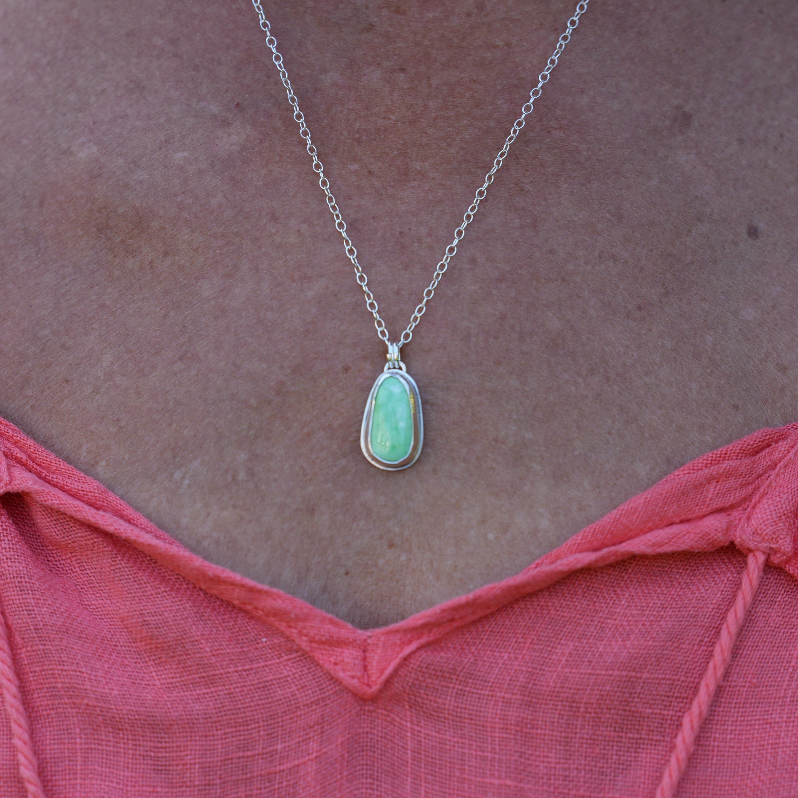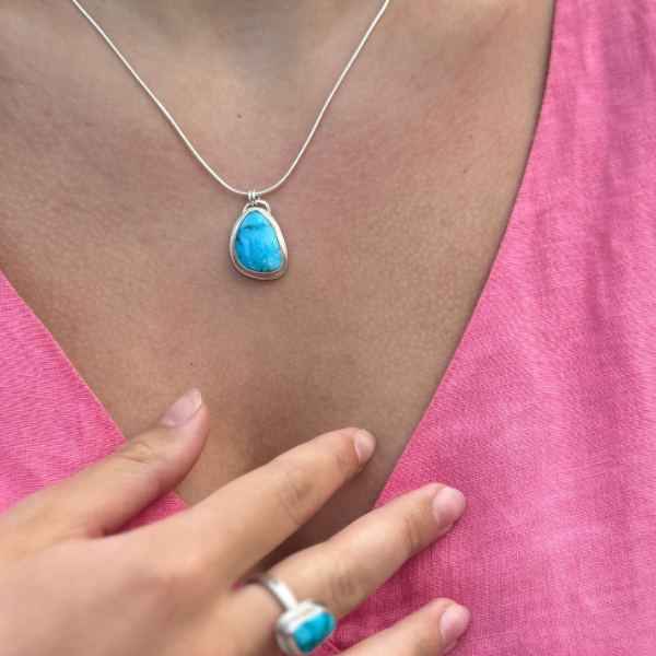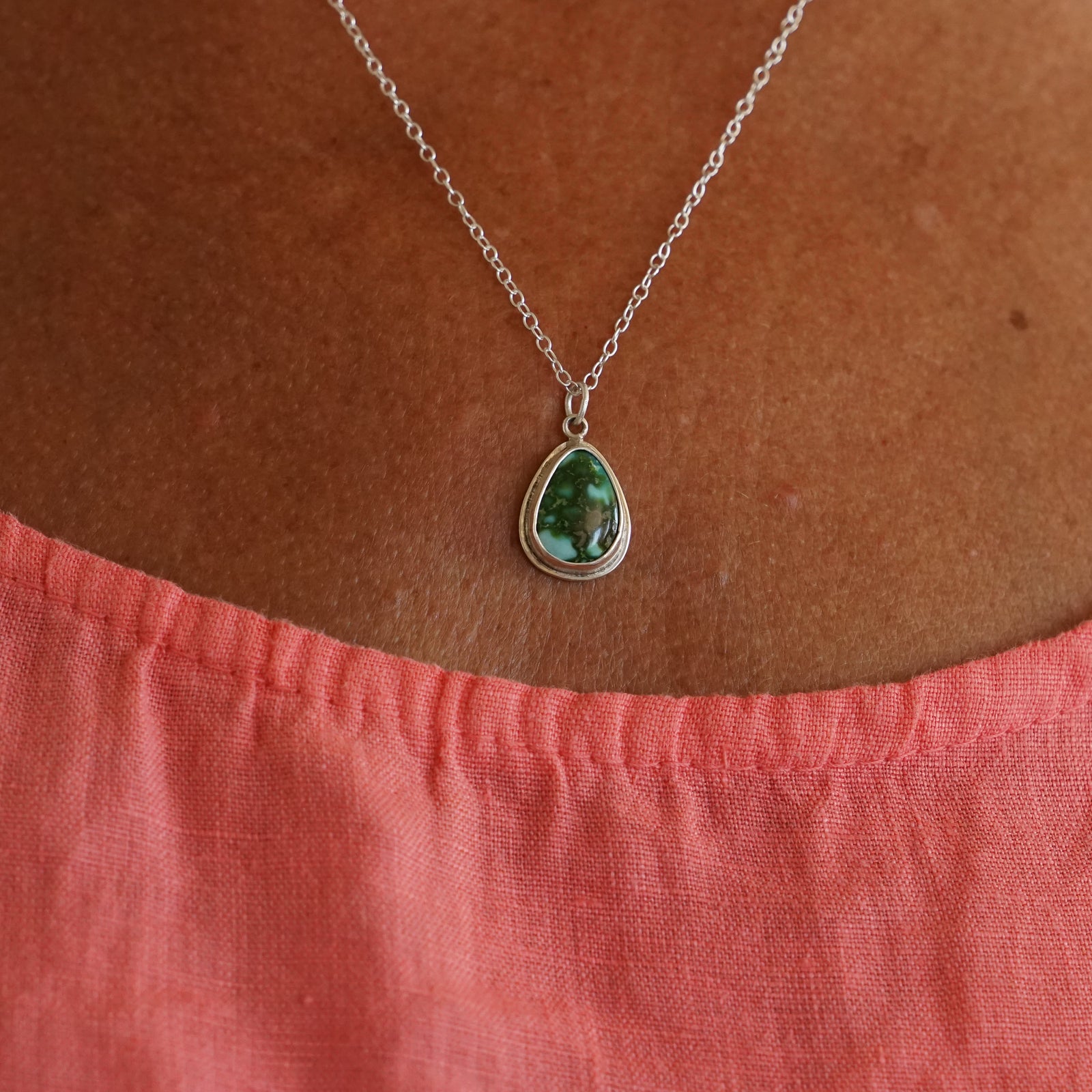 Handmade Gemstone and Silver Pendants. Turquoise gemstones in many colours from green to blue to lighting stripes and many other gemstones.  I also offer silver only pendants. Different chain lengths available.