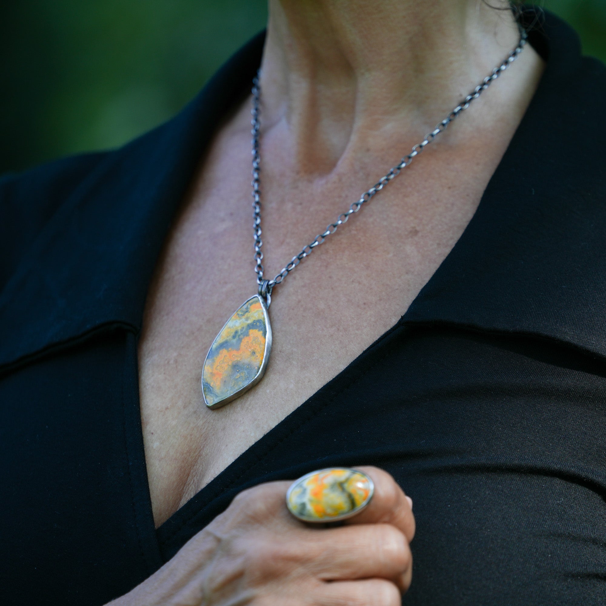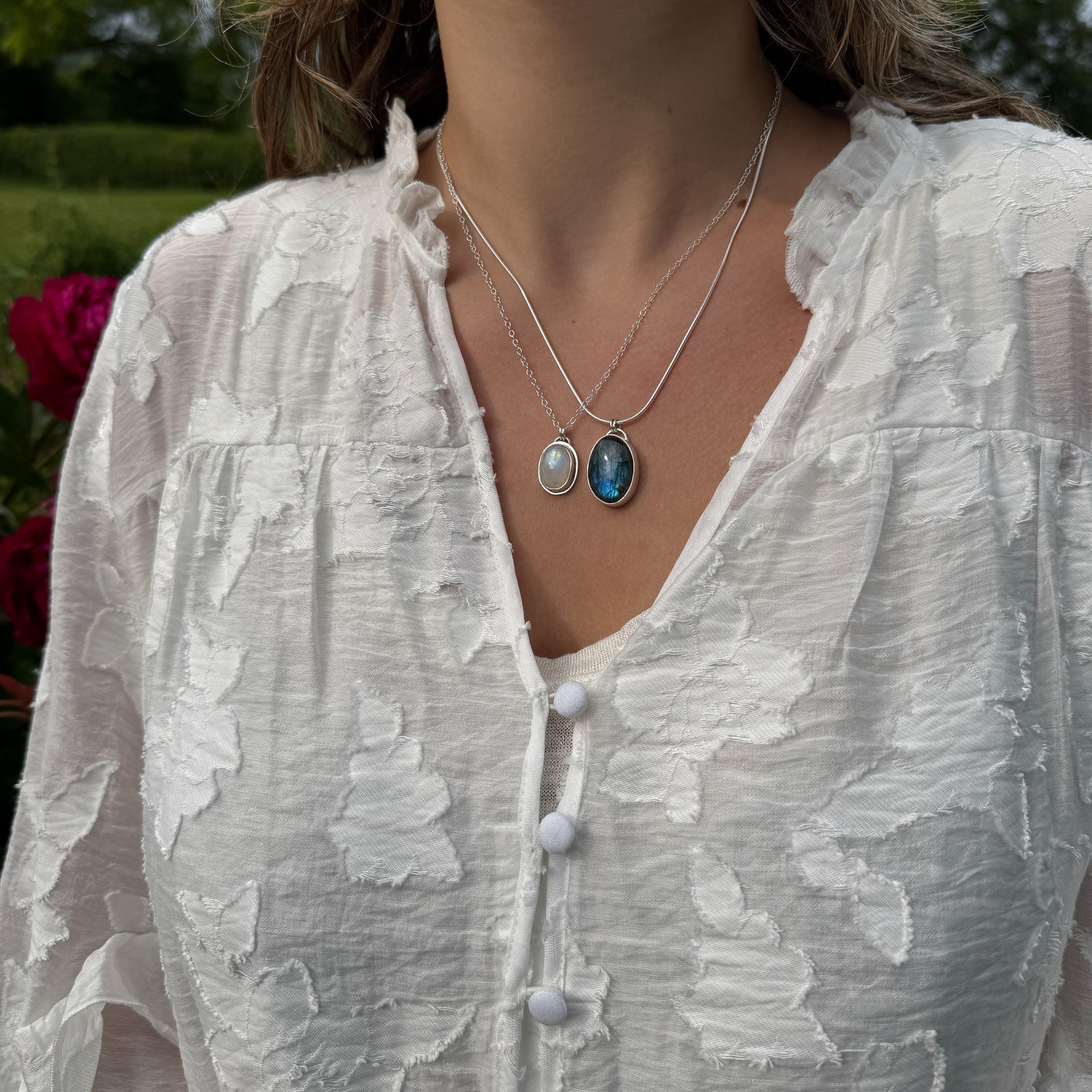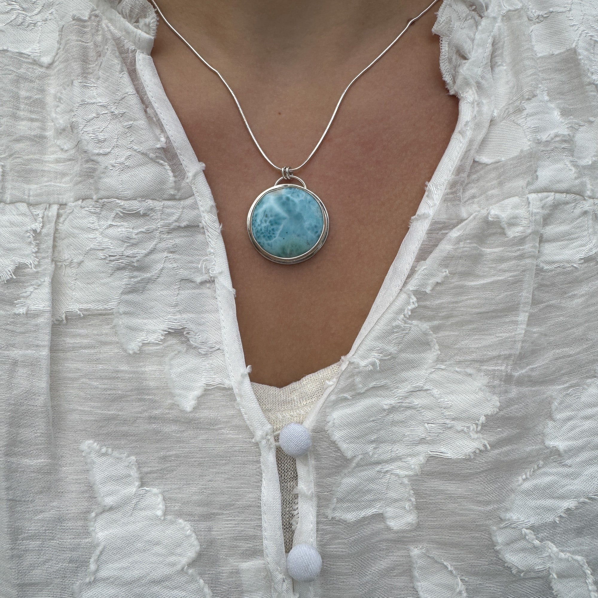 Handmade Gemstone and Silver Pendants. Turquoise gemstones in many colours from green to blue to lighting stripes and many other gemstones.  I also offer silver only pendants. Different chain lengths available.