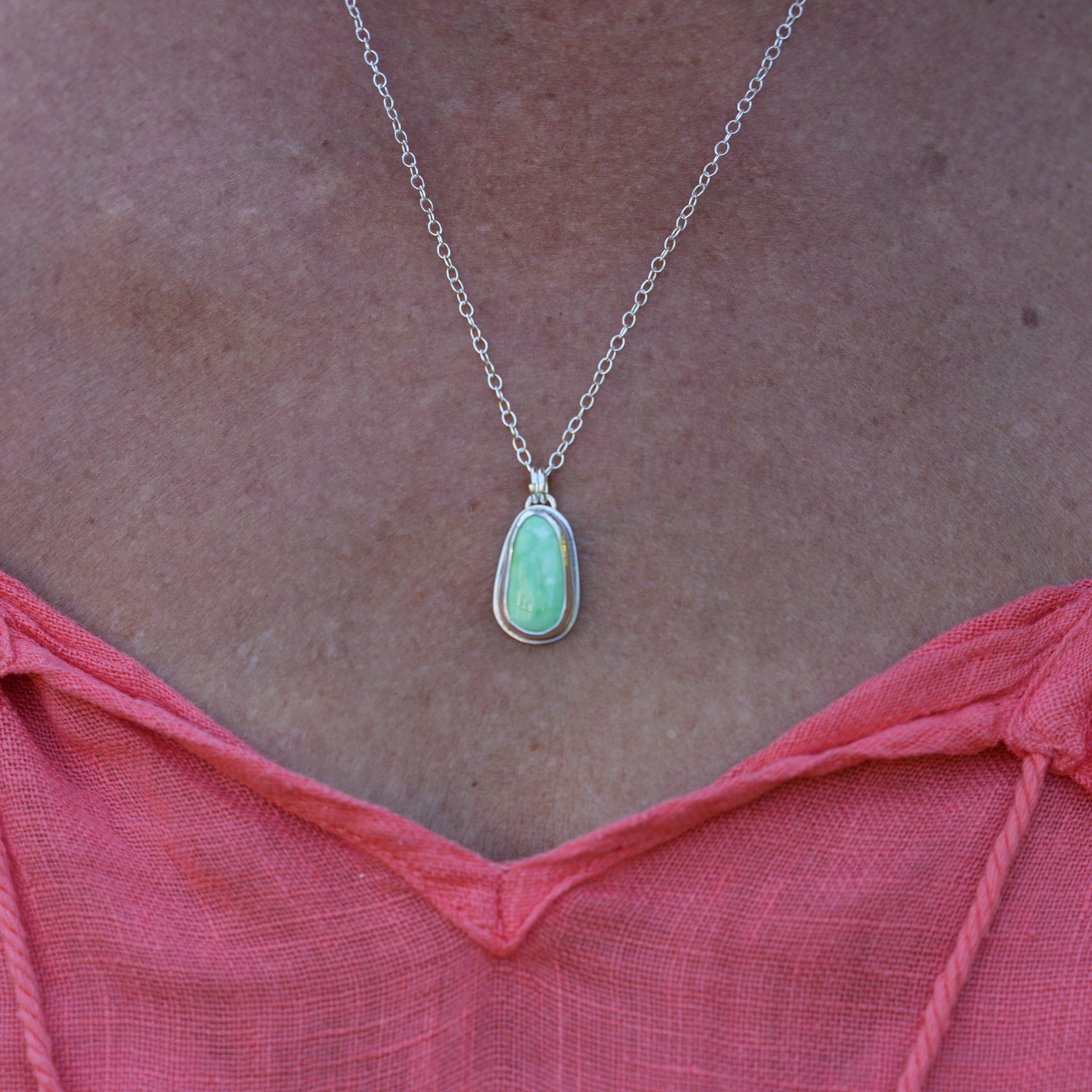 Carico Lake Green Turquoise small pendant in sterling silver