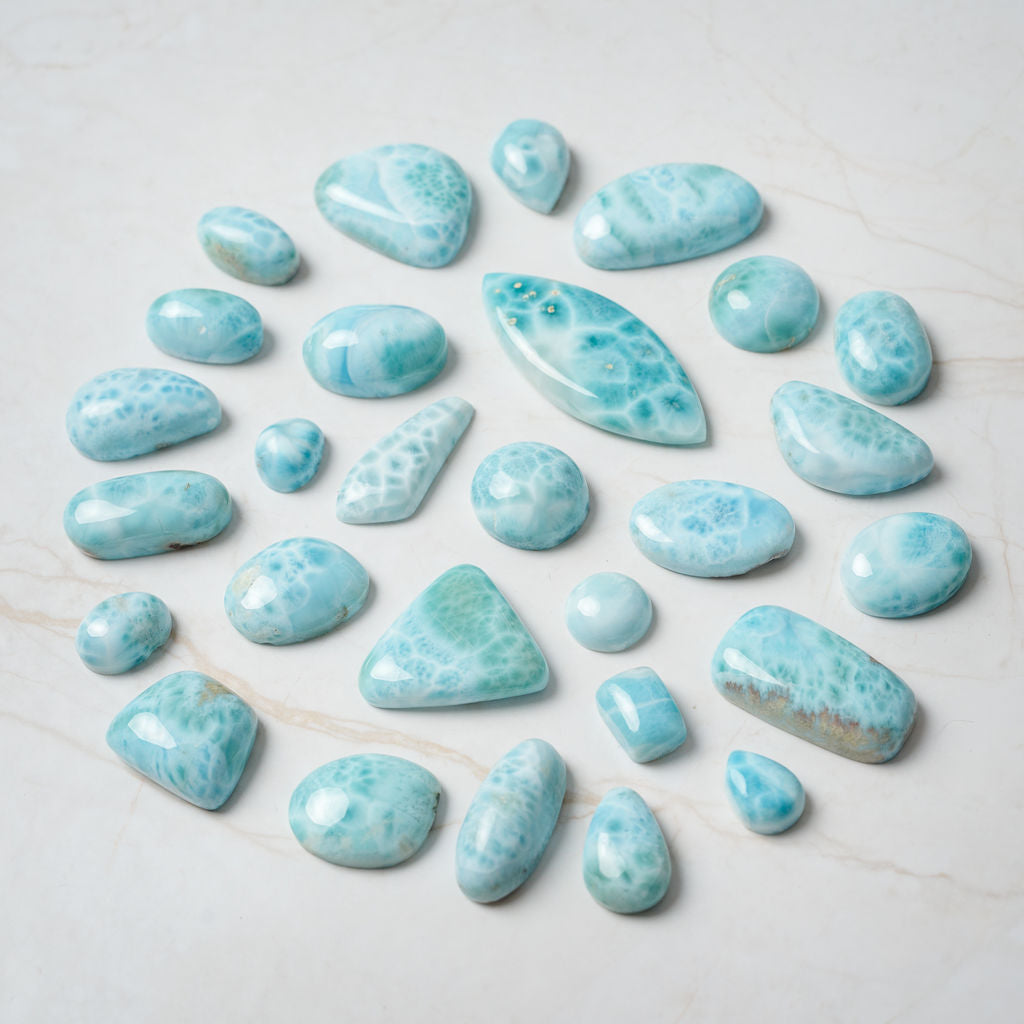 Sea blue Larimar that comes from the Dominican Republic. Like patterns in the ocean waves this is a beautiful stone. See Gallery for Larimar ring example.