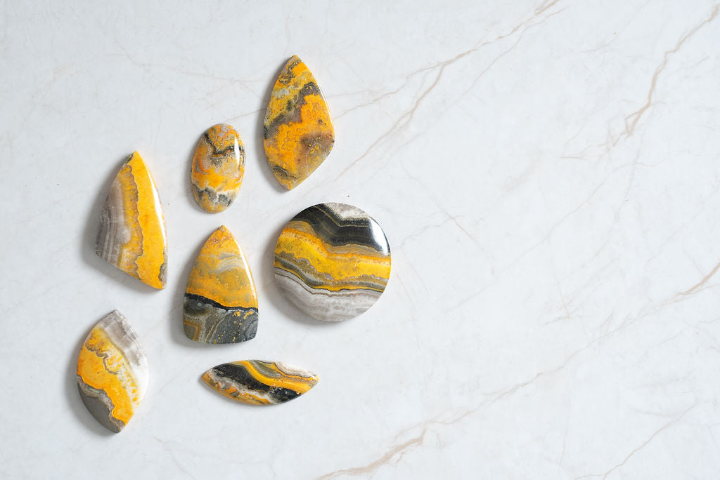 These little landscapes are called Bumble Bee Jasper and are all good sizes for large pendants. I do also have some Bumble Bee pairs that would work for dangly earrings as well.