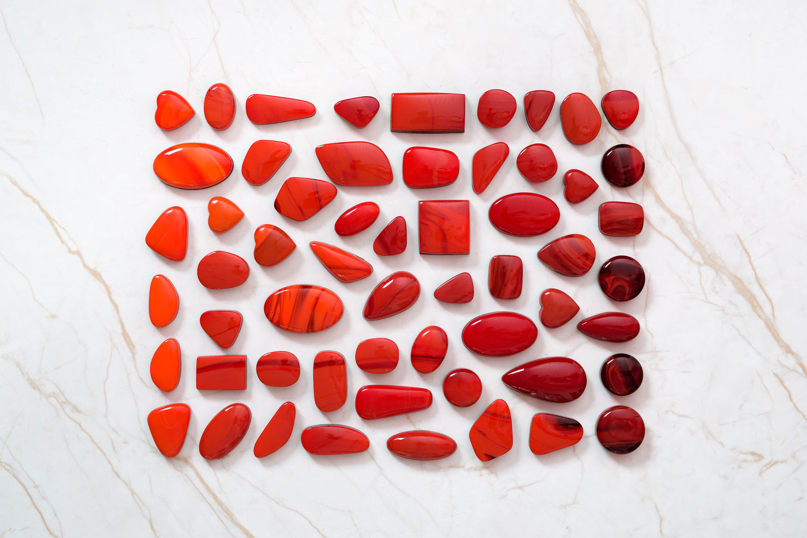 This red is undeniablely gorgeous, with its vividness and swirls of colour. It is, however, a manmade stone. I am told it is made from the run-off off of gold-smelting mixed with glass. But lovers of red jewellery are not disappointed! Interested? Please see the Design Your Own Ring process. But hurry spaces for bespoke are limited.